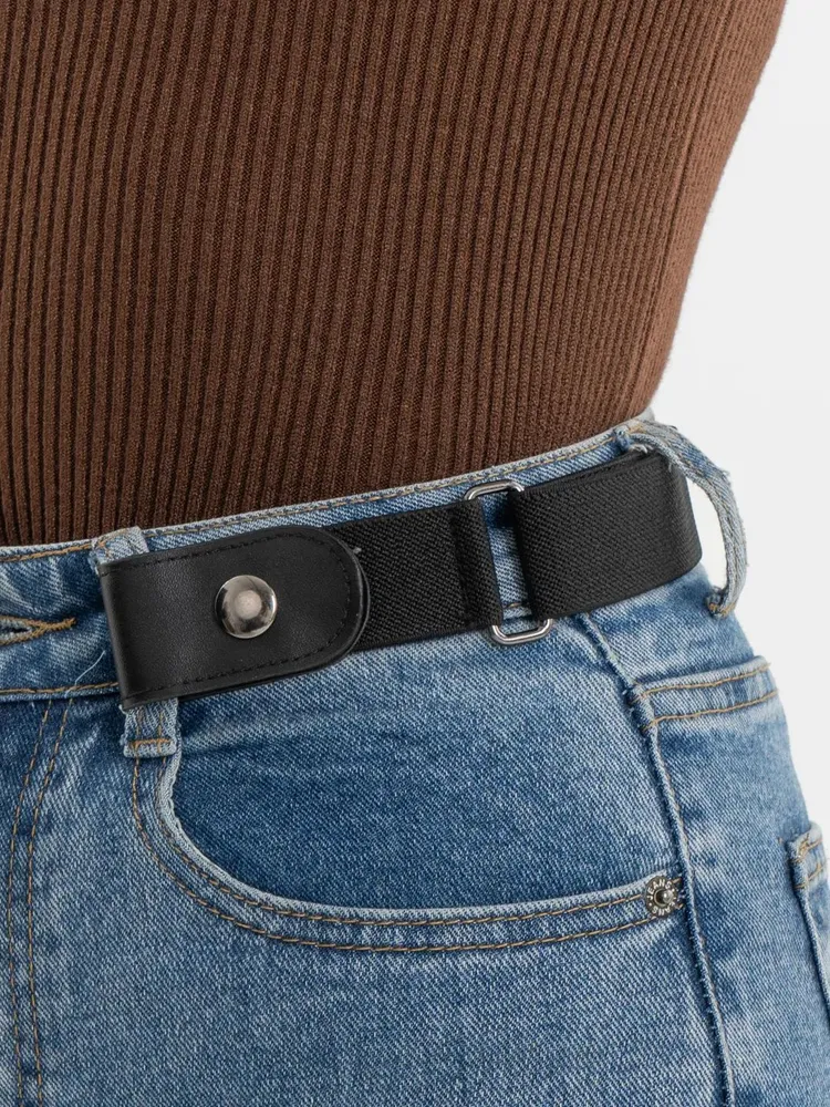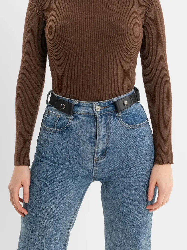 Еластичний пояс без пряжки з фіксаторами – стильне та практичне рішення для комфортного носіння.